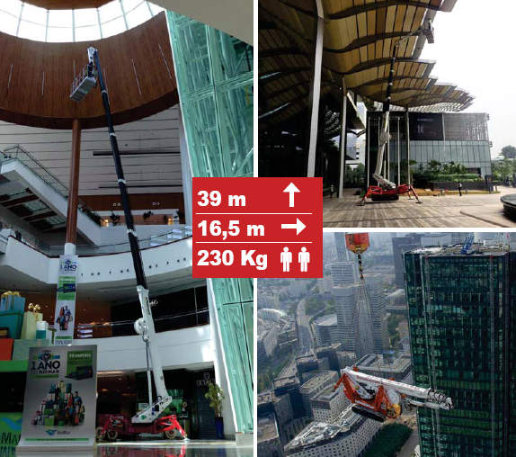 · TSJ39蜘蛛車支腿可以單獨旋轉在3個不同的位置,自動自調平5節伸縮臂同時控制臂鉸接上保證高空中的靈活性和精確度。