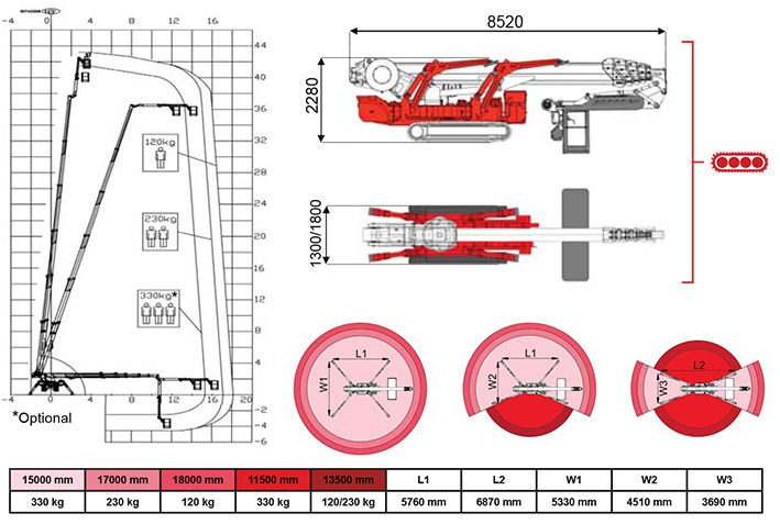 · 有120、230、330公斤載荷的工作區域,由自動“區域經理”安全系統監控。